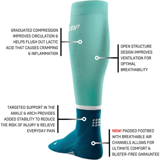 CEP’s Run Tall Compression Socks 4.0 incorporate all the benefits of our best-selling 3.0 Tall Compression Socks, but with even more technological advances to help you elevate your performance. This redefined compression profile is more precise to effectively activate the nutrient supply in your feet and calves, making your legs feel stronger and lighter. Mesh-like structure on the calves, innovative air channels in the footbed, and ventilation zones in the toe provide additional breathability and ultimate comfort.