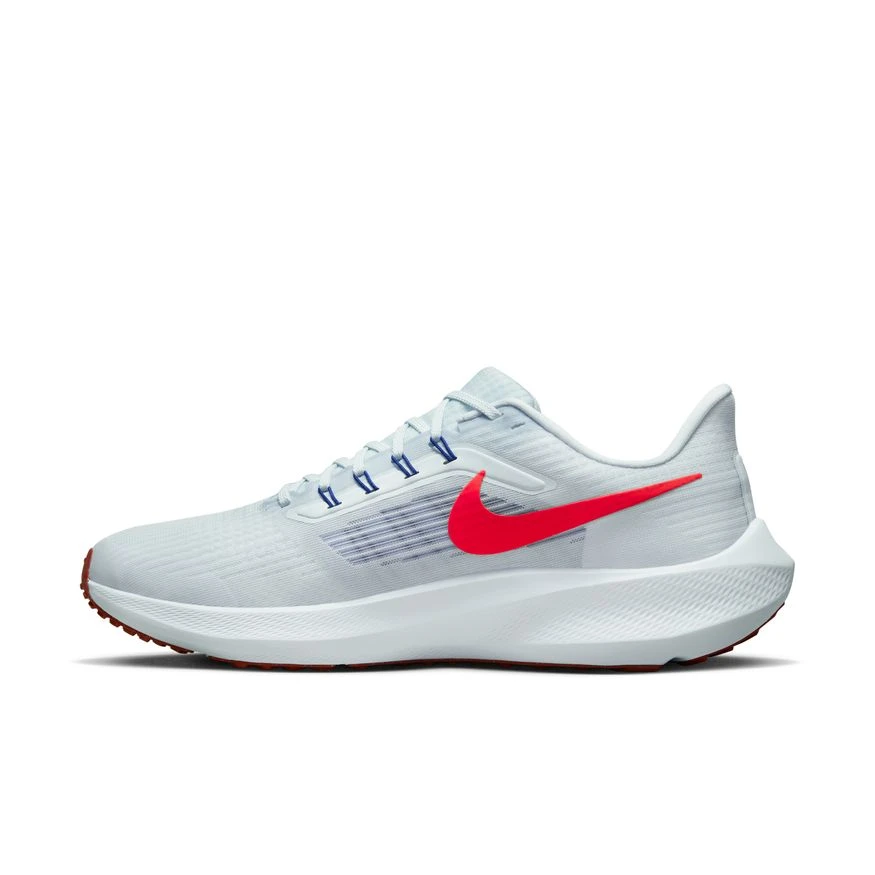 Running is your daily ritual, with every step taking you closer to your personal goal. Let the Nike Air Zoom Pegasus 39 help you ascend to new heights, whether you’re training or jogging, with its intuitive design. More lightweight up top than the Pegasus 38 and ideal to wear in any season, it has a supportive sensation to help keep your feet contained, while underfoot cushioning and double Zoom Air units (1 more than the Peg 38) give you an extra pop to your step. Your trusted workhorse with wings is back. Time to fly.