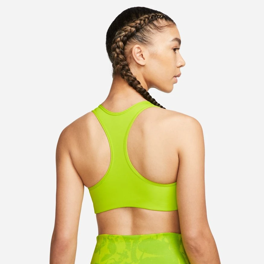 With wide, comfy straps in a classic racerback design, the Nike Dri-FIT Swoosh Non-Padded Sports Bra feels snug and secure while you move. Smooth, lightweight fabric wicks sweat to keep you dry, comfortable and focused. For every rep, step and jump—know that you’re supported.